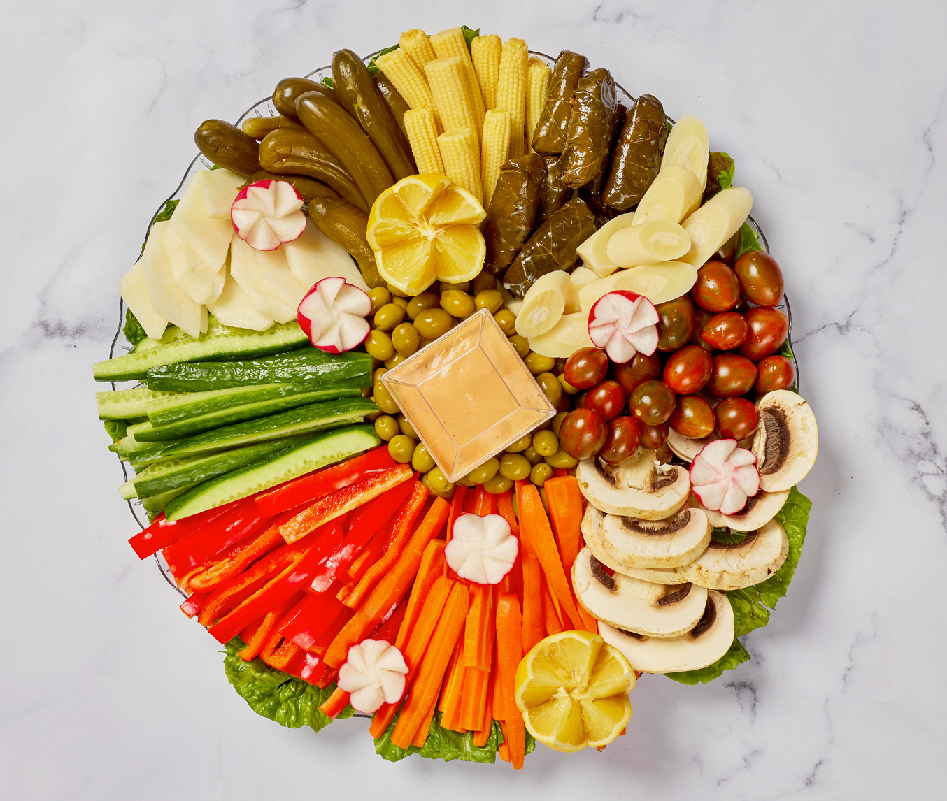 מגש ירקות עגול מבית קסם הפרי במבחר גדלים