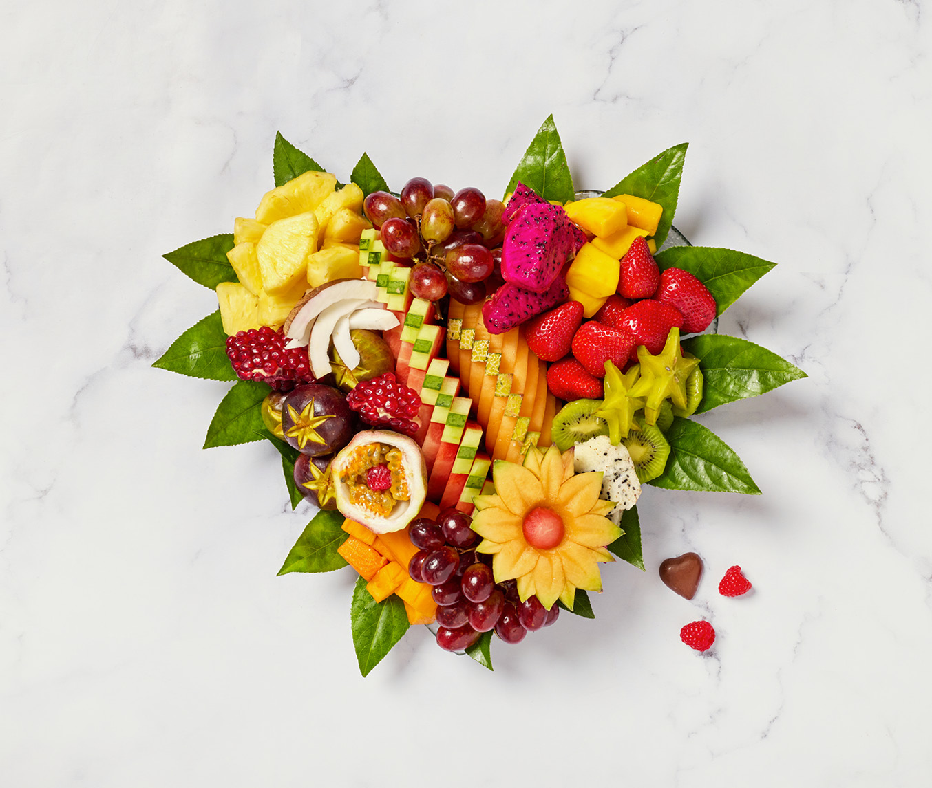 הפירות מגיעים חתוכים בצורה אלגנטית ומסודרים להפליא, עם קישוטים עדינים שמוסיפים נופך חגיגי לכל רגע. זהו המגש שמדבר בעד עצמו – מושלם עבור גברים שרוצים לרגש ולהרשים ולהביע את אהבת
