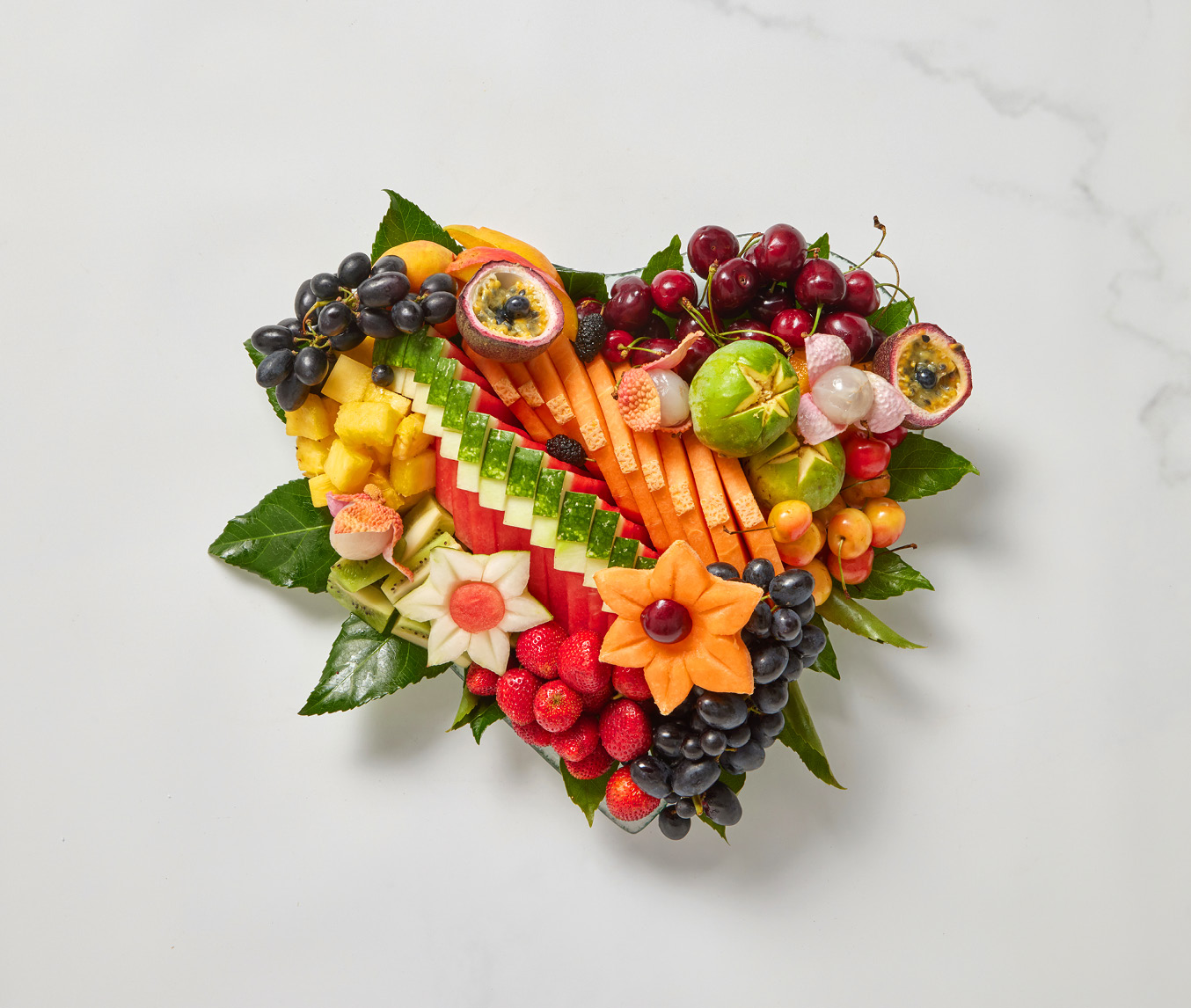 הפירות מגיעים חתוכים בצורה אלגנטית ומסודרים להפליא, עם קישוטים עדינים שמוסיפים נופך חגיגי לכל רגע. זהו המגש שמדבר בעד עצמו – מושלם עבור גברים שרוצים לרגש ולהרשים ולהביע את אהבת