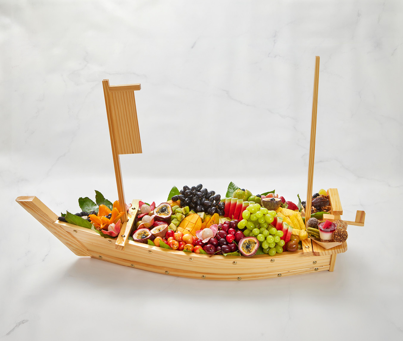 הסירה כוללת את מגוון פירות העונה: קיווי, תאנים, פיטייה אננס, מנגו ועוד