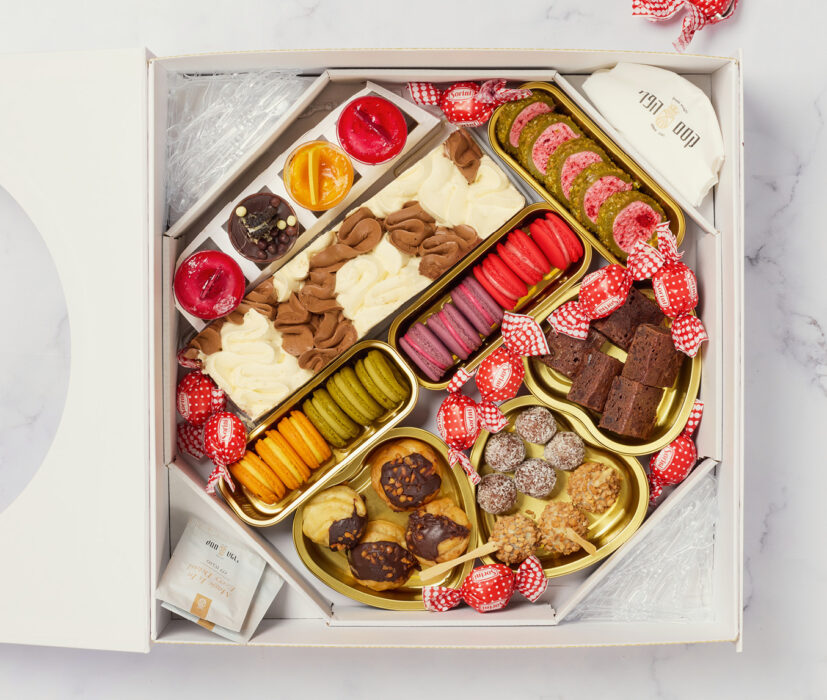 קופסא מעוצבת הכוללת מגוון רחב של קינוחיים אישיים כמו:
